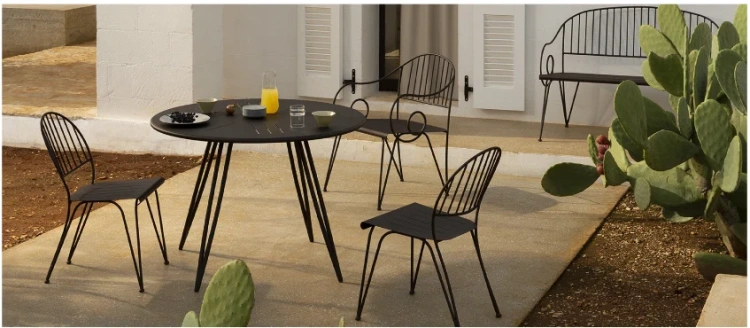 L’acier et le fer forgé brillent par leur élégance, leur longévité et leur robustesse. Assurez-vous de leur qualité pour ne pas craindre la rouille, car les embruns salés du bord de mer sont redoutables. L’autre avantage du fer forgé et de l’acier est d’être lourds, ce qui les empêche d’être déplacés par un coup de vent violent. En revanche, vous aurez plus de mal à les déplacer.